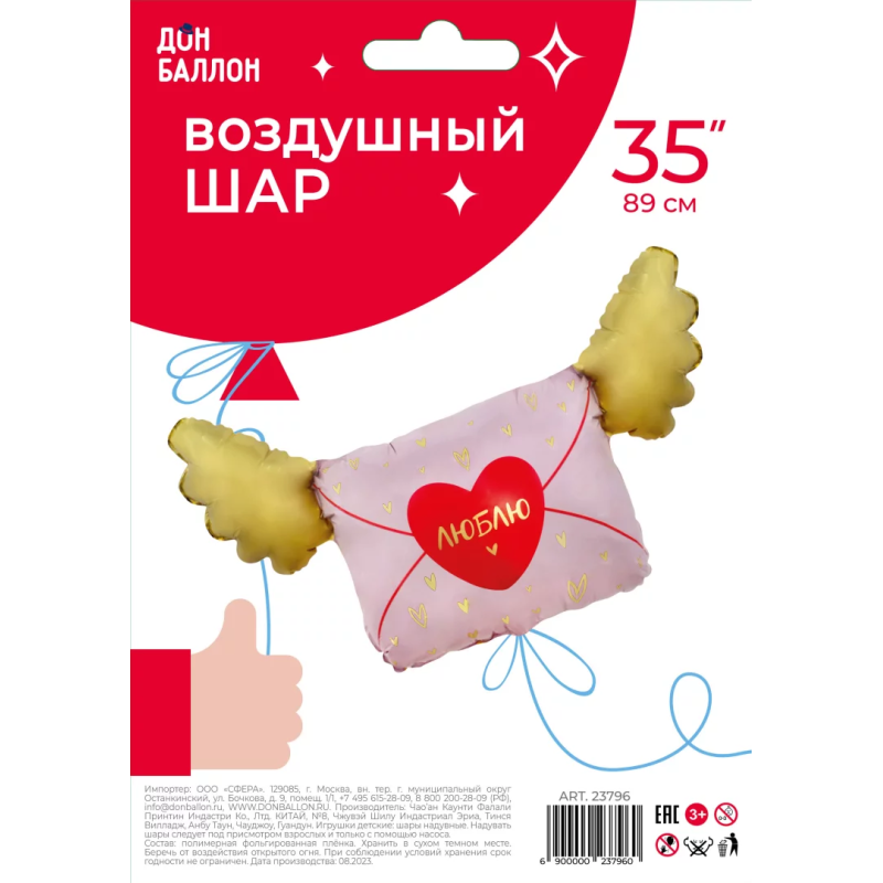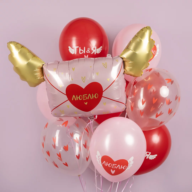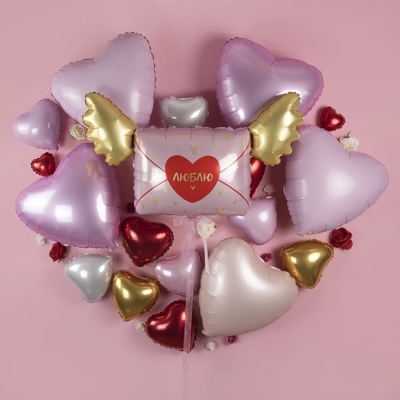 Шар (35''/89 см) Фигура, Люблю, Письмо Валентинка, 1 шт. в уп., 23796