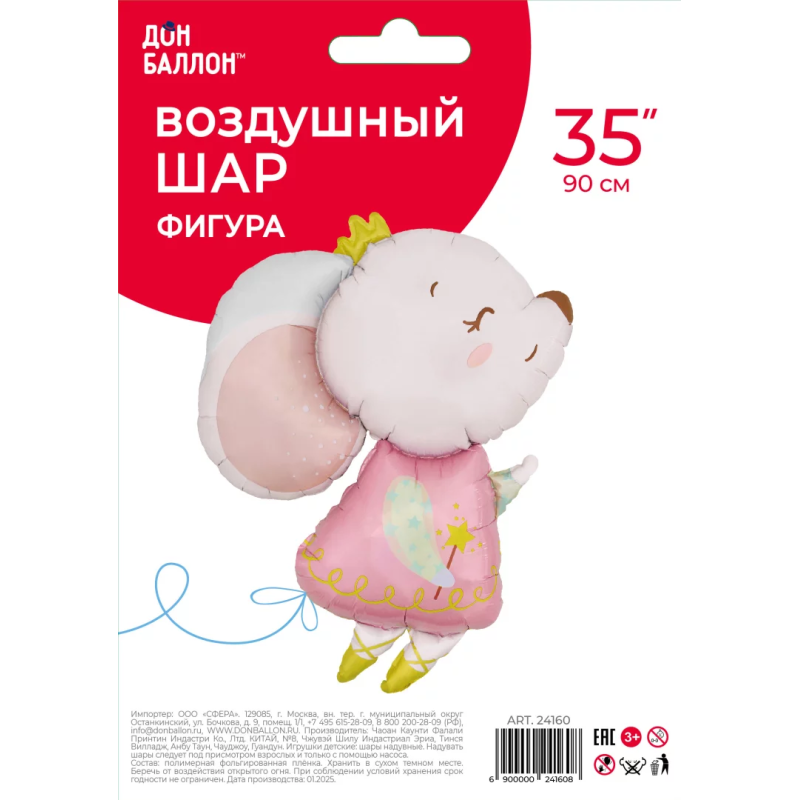 Шар (35''/89 см) Фигура, Мышка Принцесса, 1 шт. в уп., 24160