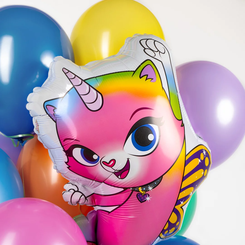 Шар (35''/89 см) Фигура, Радужно-бабочково-единорожная кошка, 1 шт., L197