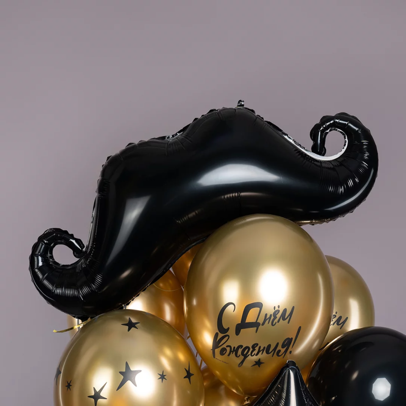 Шар (35''/89 см) Фигура, Усы, Черный, 1 шт., 15705