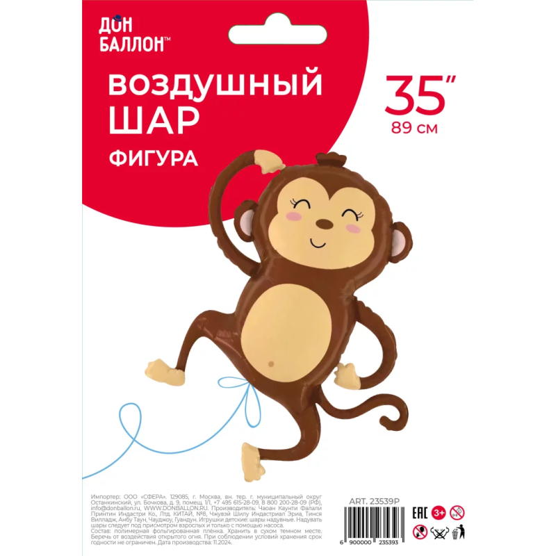 Шар (35''/89 см) Фигура, Веселая обезьянка, 1 шт. в уп., 23539P
