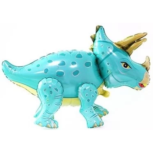 Шар (36''/91 см) Фигура 3D, Динозавр Трицератопс, Бирюзовый, 1 шт. в уп., 19553