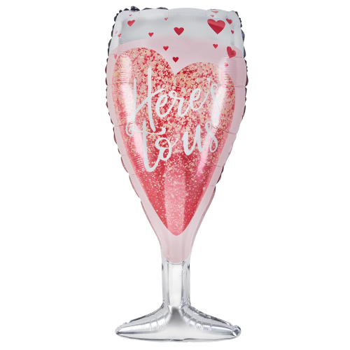 Шар (36''/91 см) Фигура, Бокал, Сверкающие сердца, Розовый, 1 шт., 20387