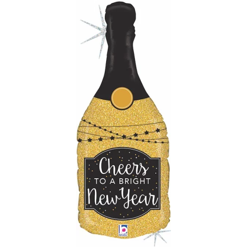 Шар (36''/91 см) Фигура, Бутылка, Новогоднее шампанское, Золото, Голография, 1 шт., 35395GH