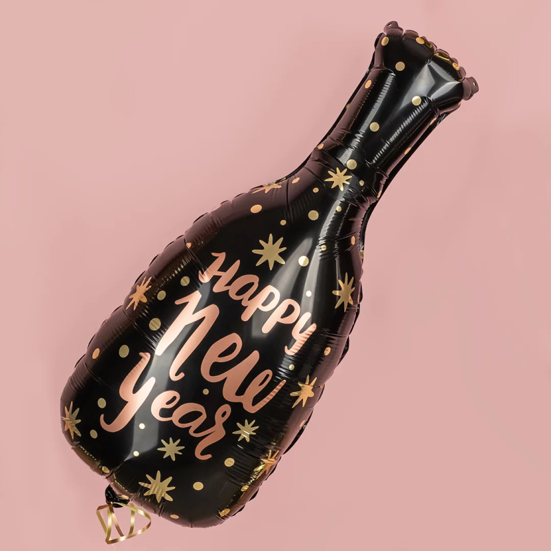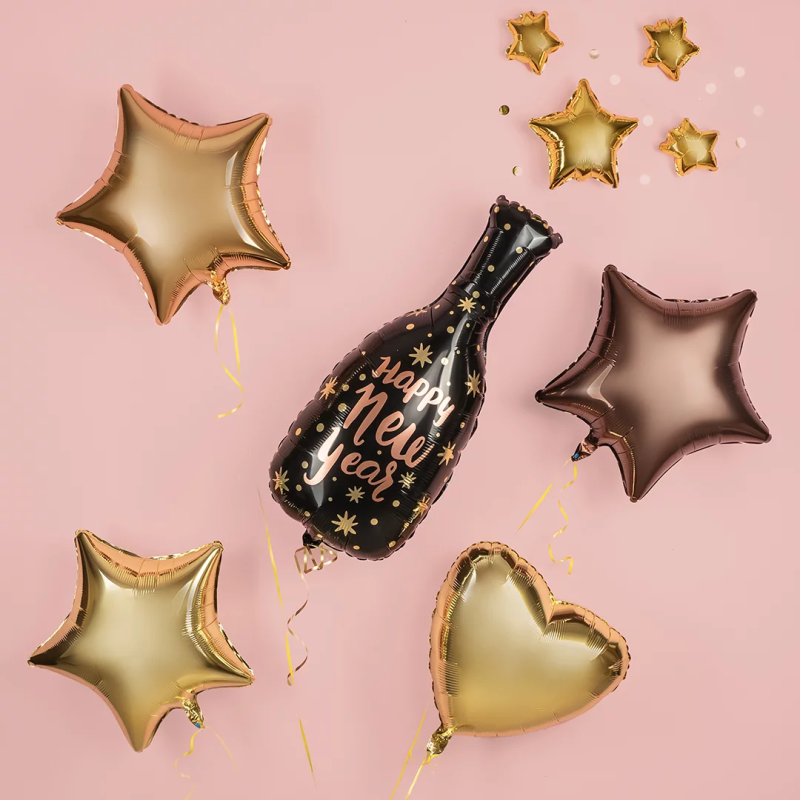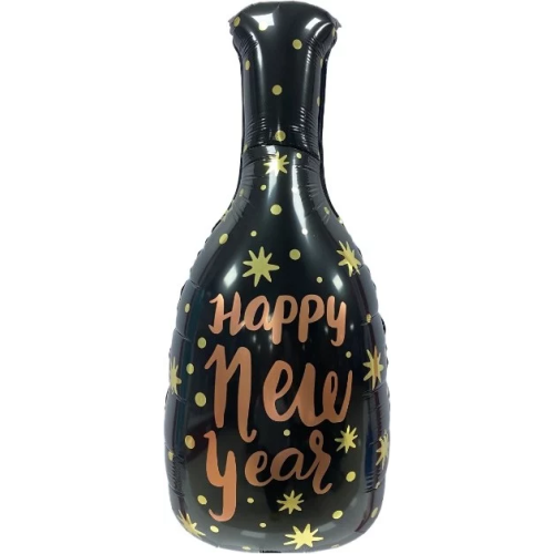 Шар (36''/91 см) Фигура, Бутылка Шампанское, Новогодние звезды, Черный, 1 шт., 23135