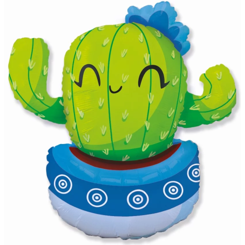 Шар (36''/91 см) Фигура, Счастливый кактус, Голубой, 1 шт., 901832A