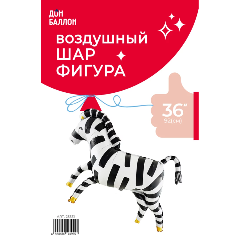 Шар (36''/91 см) Фигура, Зебра, 1 шт. в уп., 23551