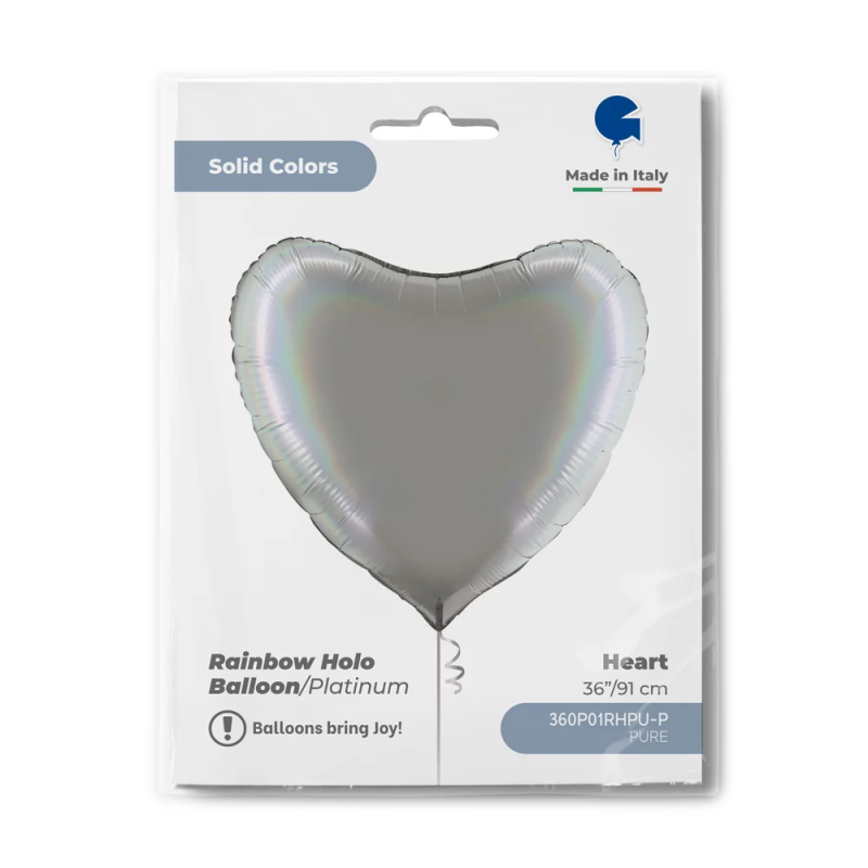 Шар (36''/91 см) Сердце, Серебро, Голография, 1 шт. в уп., 360P01RHPU-P
