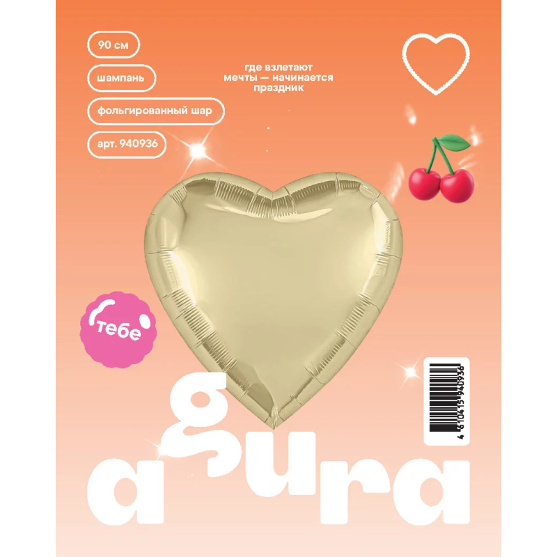 Шар (36''/91 см) Сердце, Шампань, 1 шт. в уп., 940936