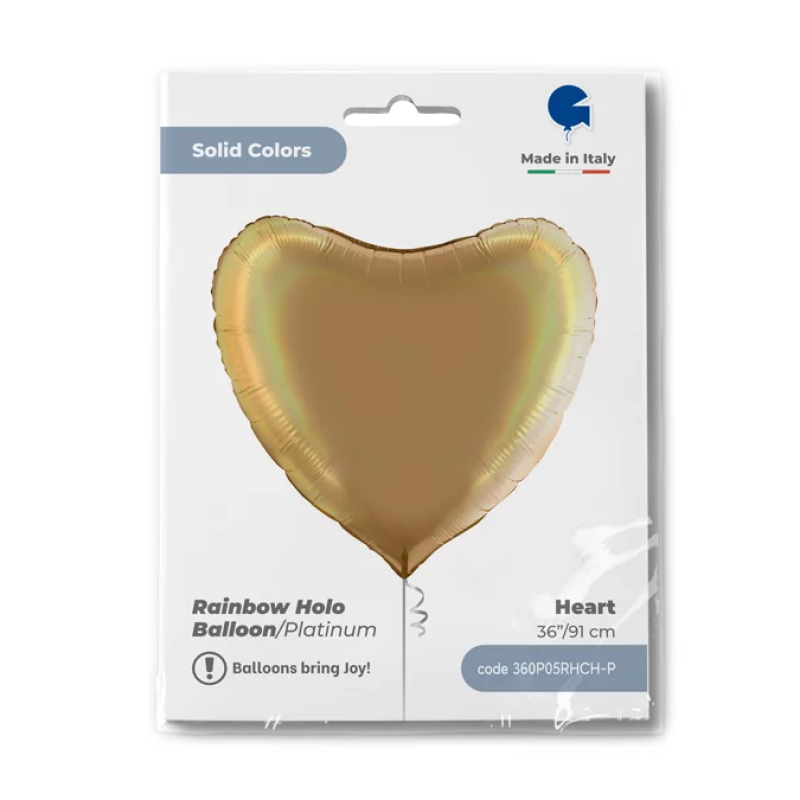 Шар (36''/91 см) Сердце, Шампань, Голография, 1 шт. в уп., 360P05RHCH-P