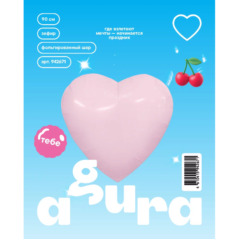 Шар (36''/91 см) Сердце, Зефирный, 1 шт. в уп., 942671