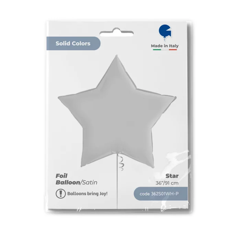 Шар (36''/91 см) Звезда, Белый, Сатин, 1 шт. в уп., 362S01WH-P