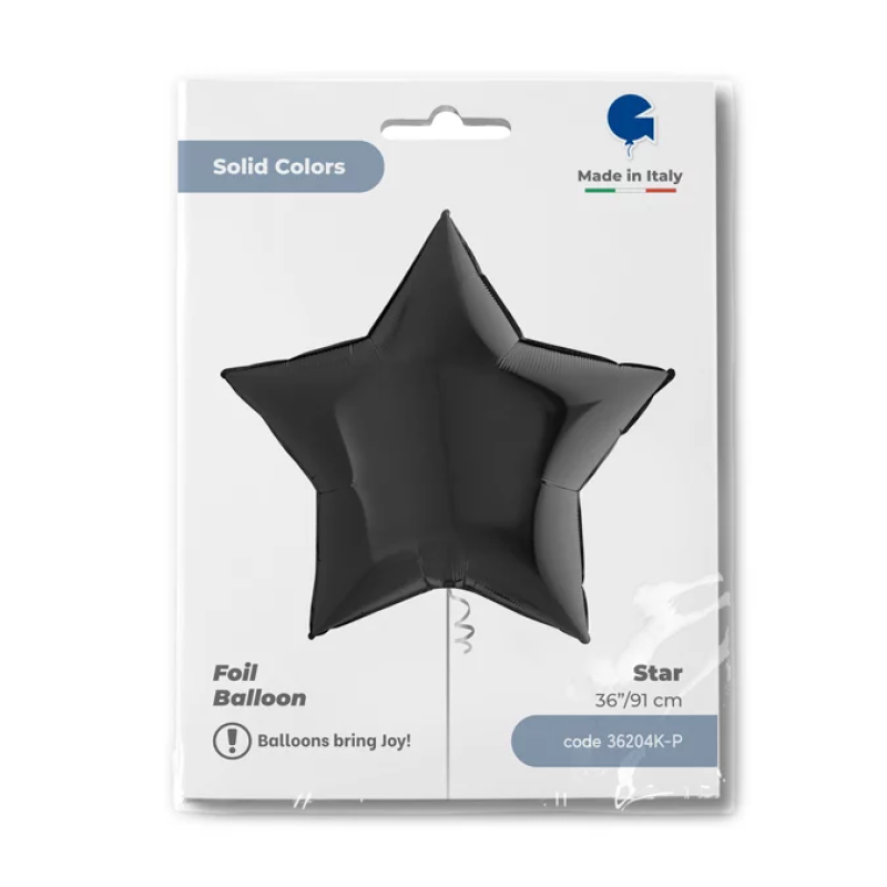 Шар (36''/91 см) Звезда, Черный, 1 шт. в уп., 36204K-P