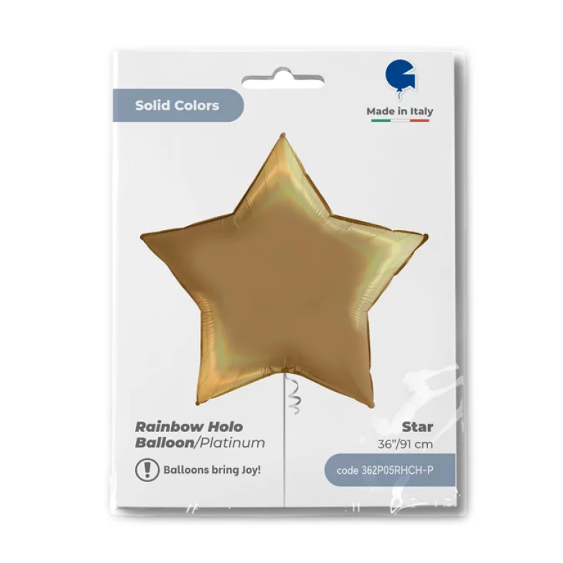 Шар (36''/91 см) Звезда, Шампань, Голография, 1 шт. в уп., 362P05RHCH-P