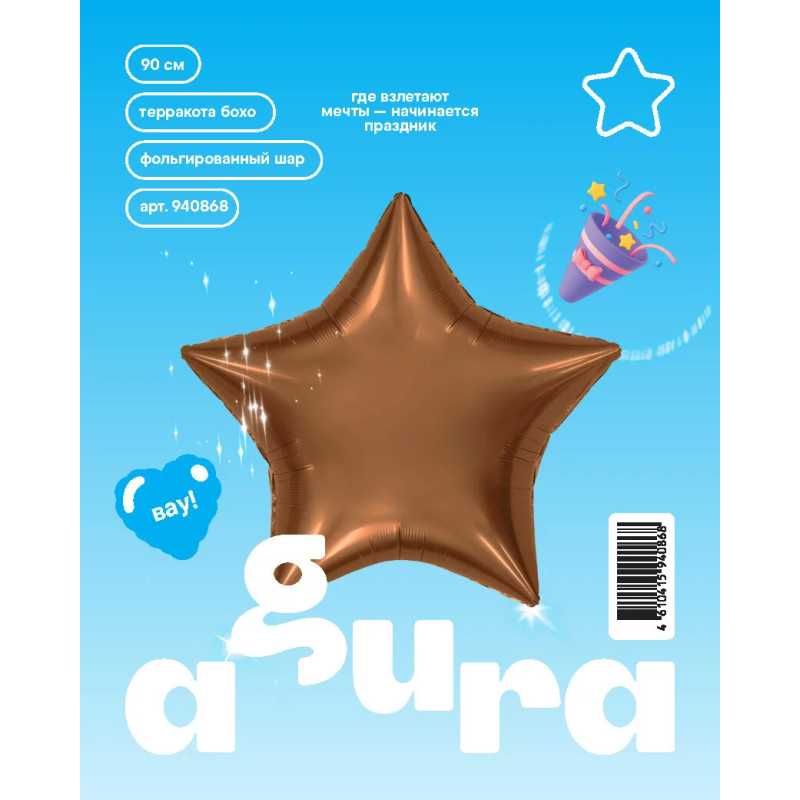 Шар (36''/91 см) Звезда, Терракота, Бохо, 1 шт. в уп., 940868