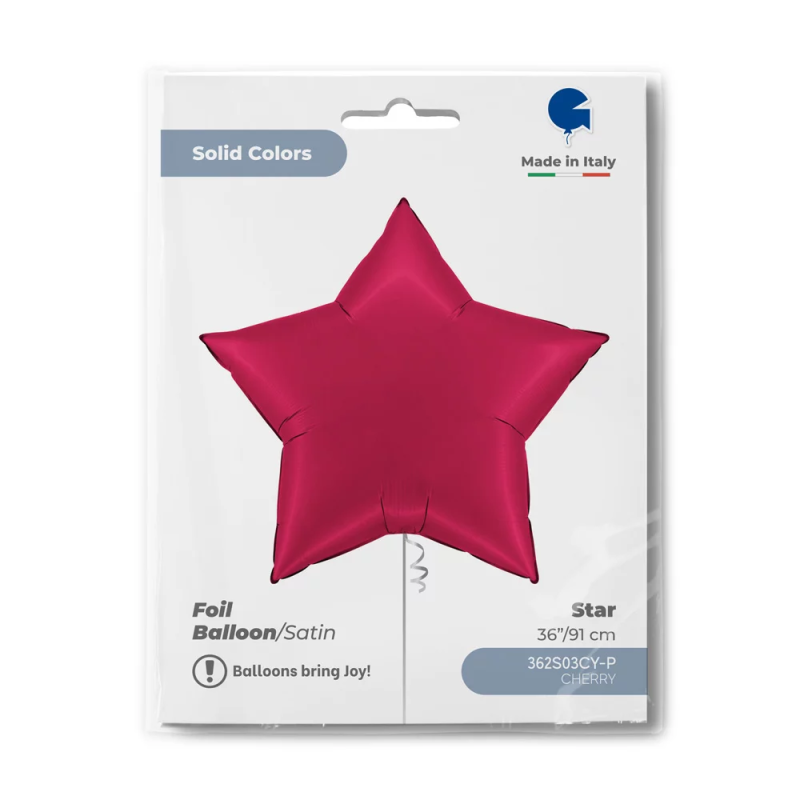 Шар (36''/91 см) Звезда, Вишневый, Сатин, 1 шт. в уп., 362S03CY-P