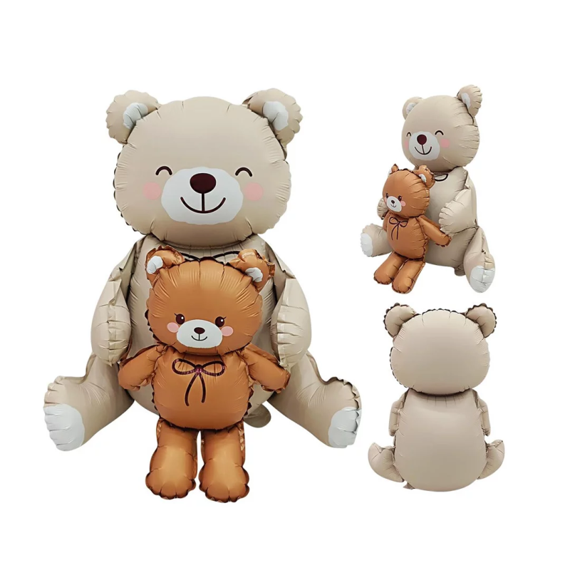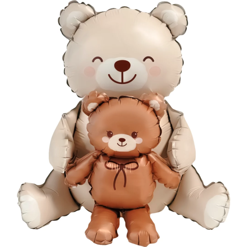 Шар (37''/94 см) Фигура 3D, Сидячий мишка с медвежонком, Сатин, 1 шт. в уп., 27520