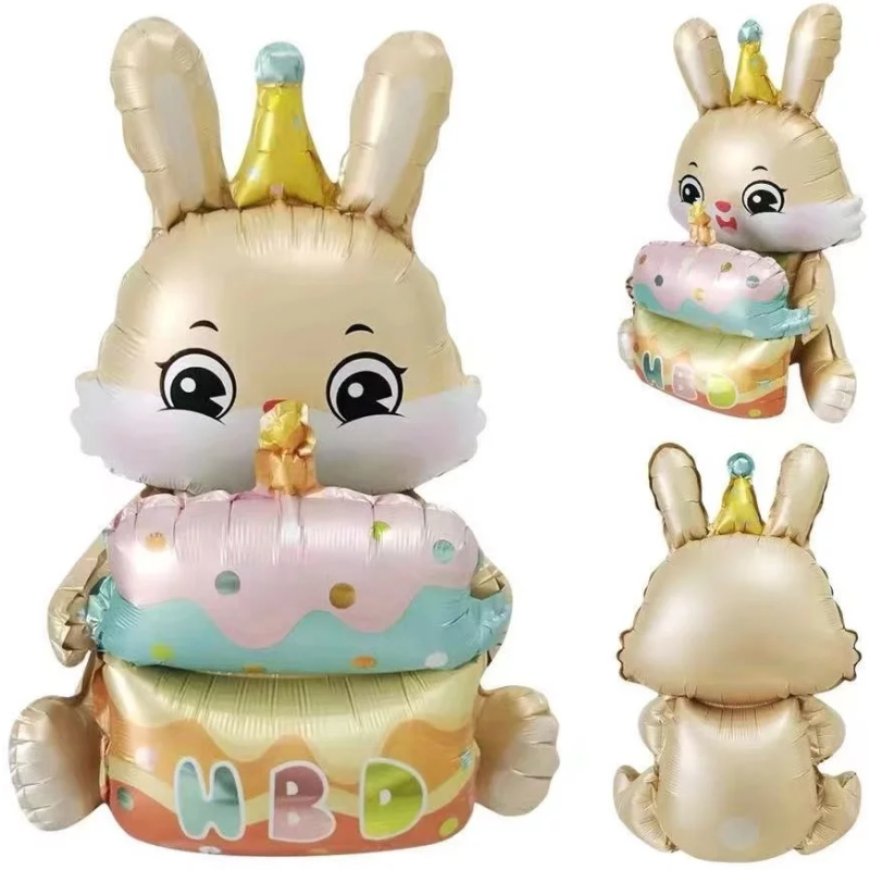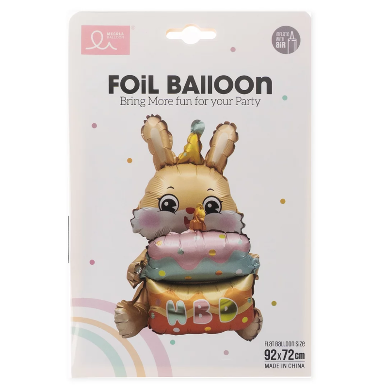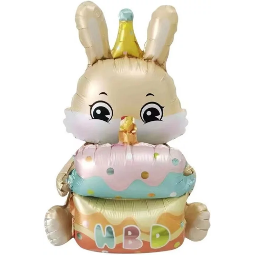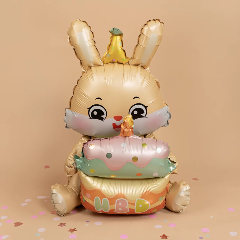 Шар (37''/94 см) Фигура 3D, Зайка с тортиком, 1 шт. в уп., 24877