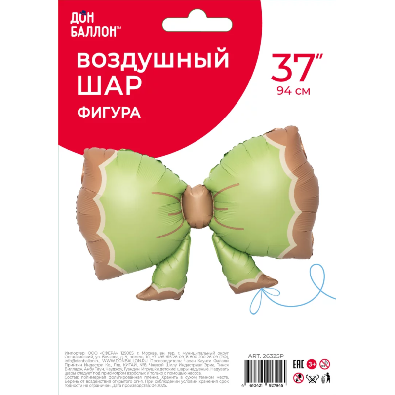 Шар (37''/94 см) Фигура, Бант, Мятный, Сатин, 1 шт. в уп., 26325P