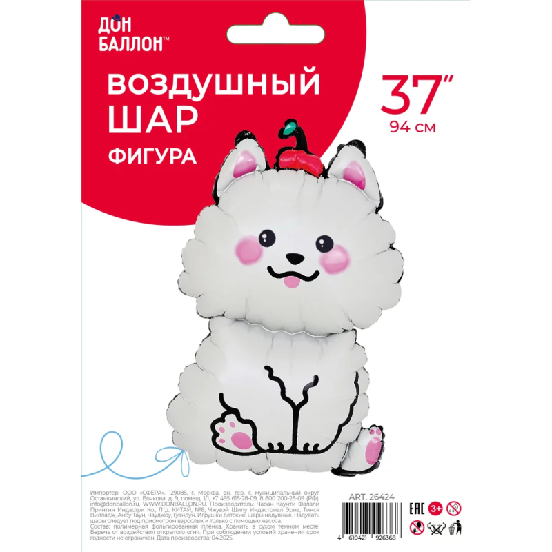 Шар (37''/94 см) Фигура, Белый песик, 1 шт. в уп., 26424