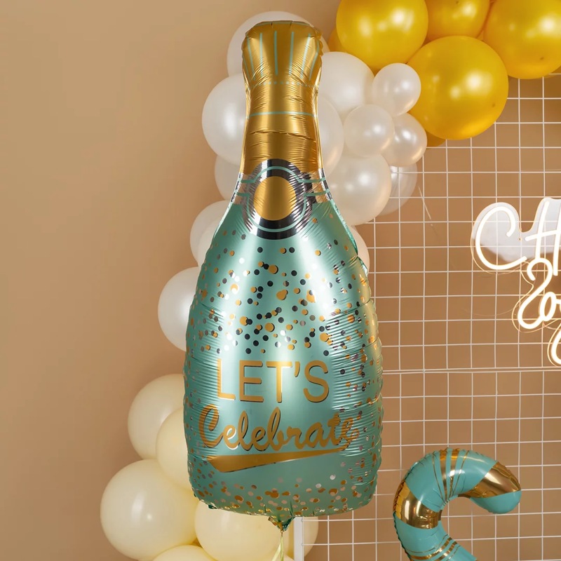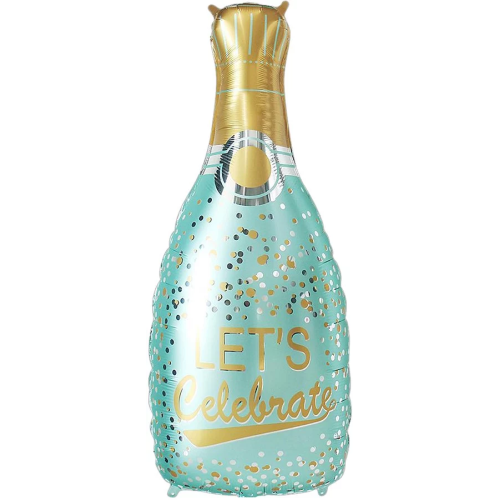 Шар (37''/94 см) Фигура, Бутылка Шампанское, Праздничное конфетти, Голубой, 1 шт., 23590