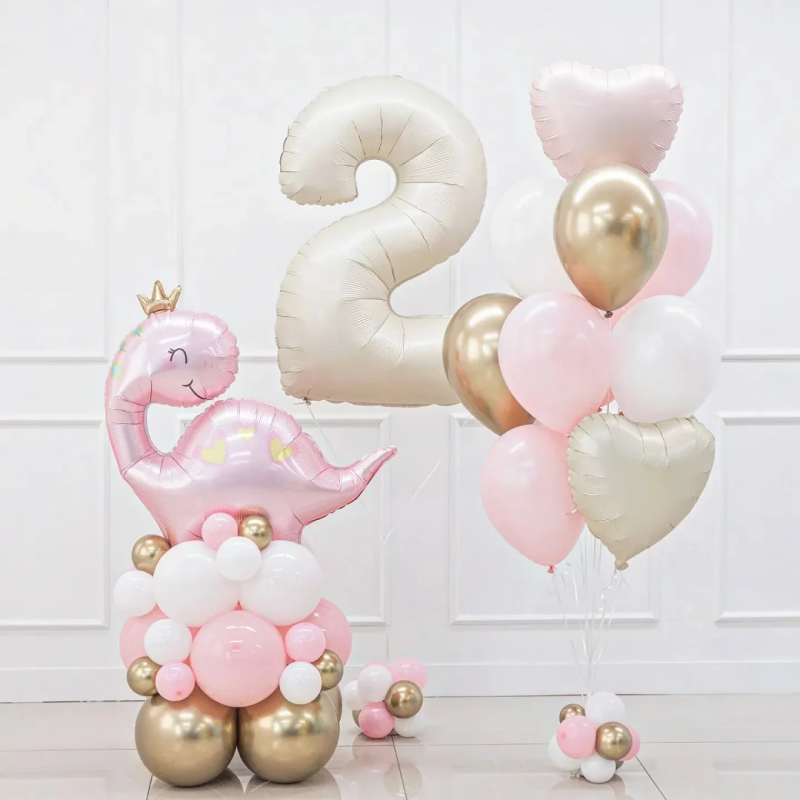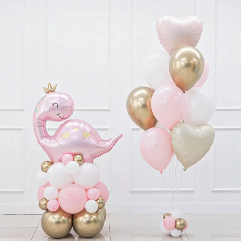 Шар (37''/94 см) Фигура, Динозаврик Принцесса, Розовый, 1 шт., 23722