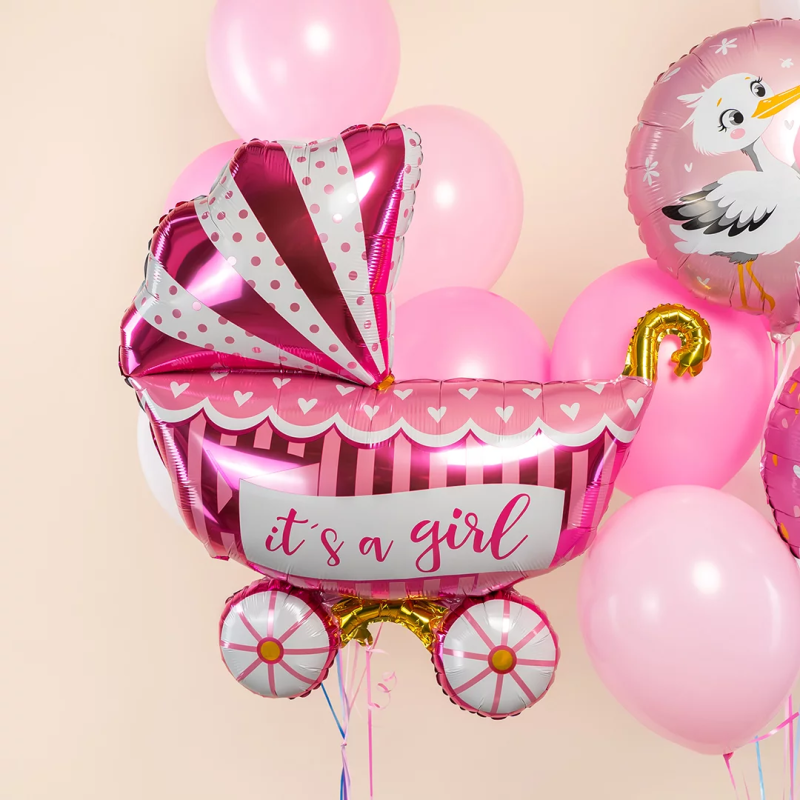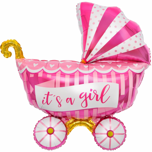 Шар (37''/94 см) Фигура, Коляска для девочки, Розовый, 1 шт. в уп., 19872P