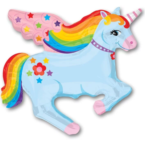 Шар (37''/94 см) Фигура, Радужный единорог, Голубой, 1 шт., 1207-1542