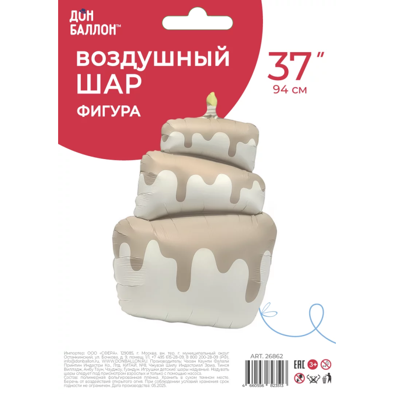 Шар (37''/94 см) Фигура, Торт, Бежевый, Сатин, 1 шт. в уп., 26862