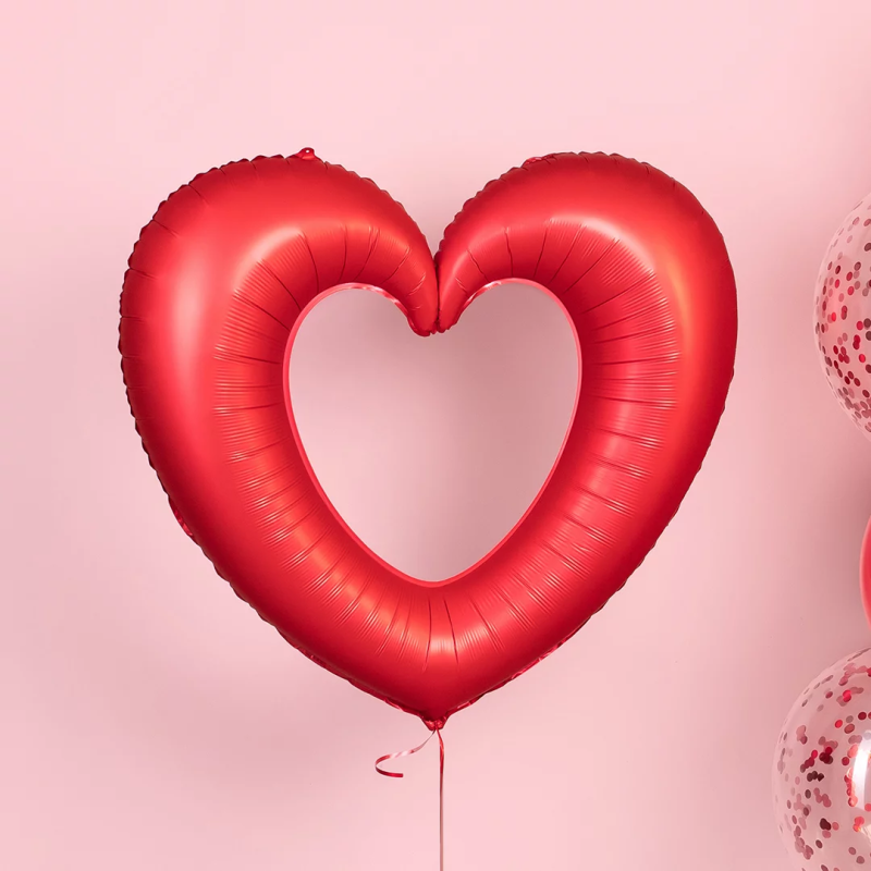 Шар (37''/94 см) Сердце, Контур, Красный, Сатин, 1 шт. в уп., 27458