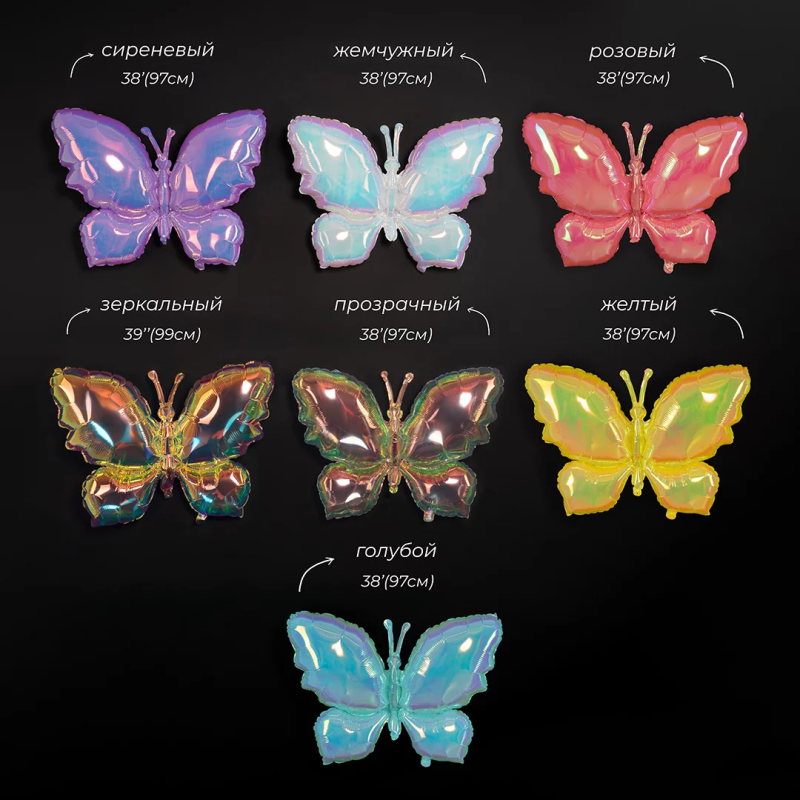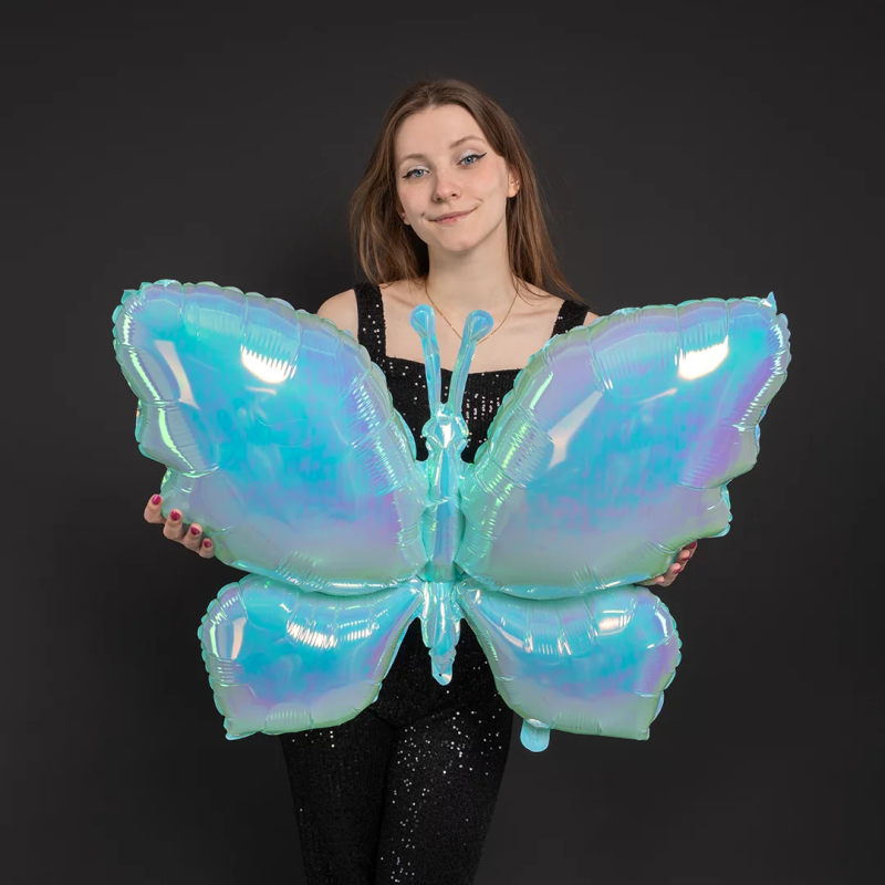 Шар (38''/97 см) Фигура, Бабочка (надув воздухом), Голубой, Хамелеон, 1 шт. в уп., 24985