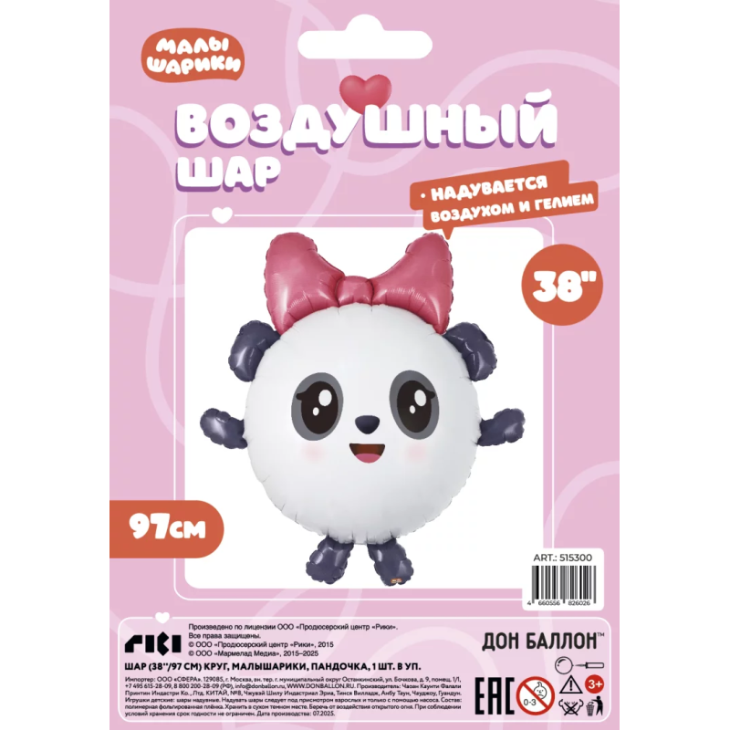 Шар (38''/97 см) Фигура, Малышарики, Пандочка, 1 шт. в уп., 515300