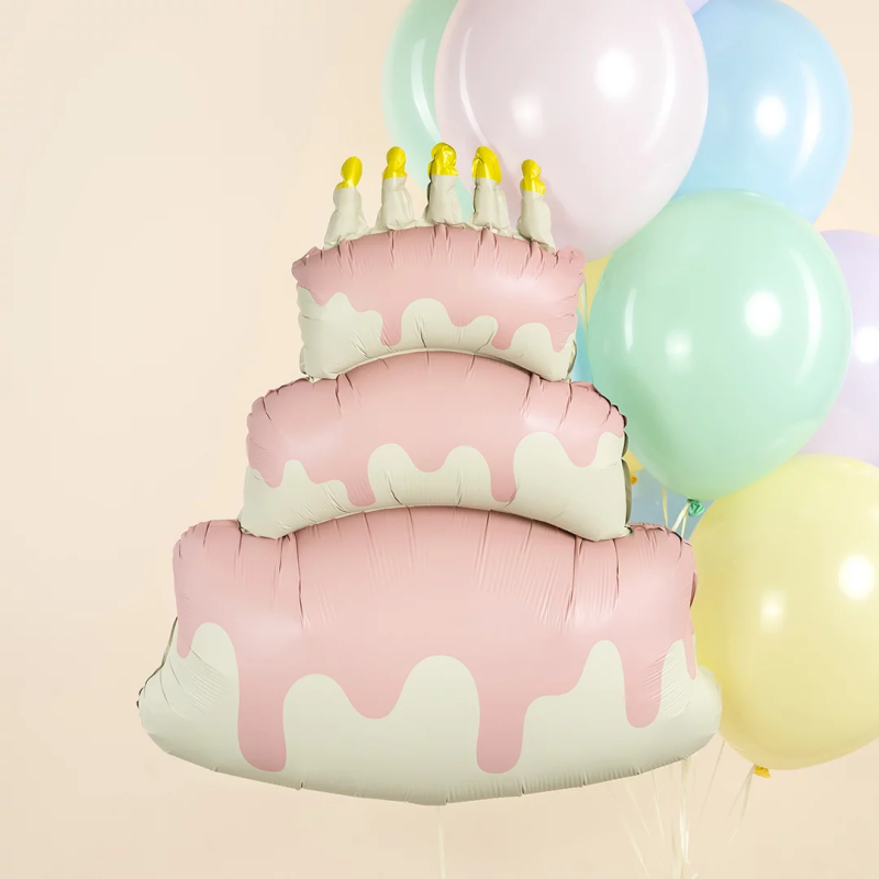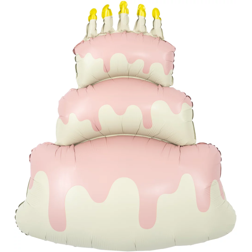 Шар (38''/97 см) Фигура, Торт со свечками, Розовый, Сатин, 1 шт. в уп., 27319
