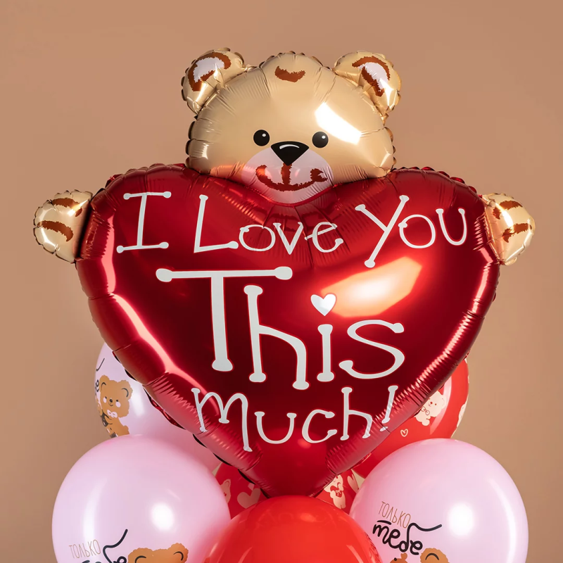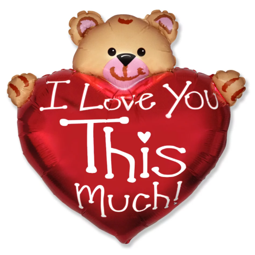 Шар (38''/97 см) Сердце, Медвежонок с большим сердцем, 1 шт., 901715