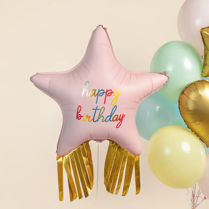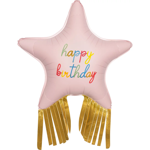 Шар (38''/97 см) Звезда, Happy Birthday, Золотой каскад, Розовый, Сатин, 1 шт., 27634