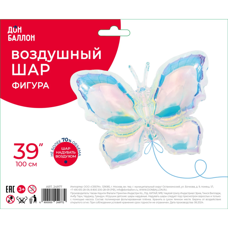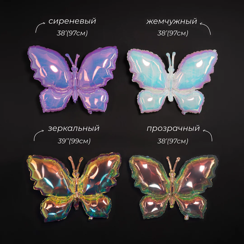 Шар (39''/99 см) Фигура, Бабочка (надув воздухом), Зеркальный, Хамелеон, 1 шт. в уп., 24977