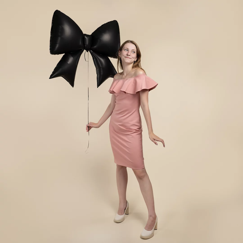 Шар (39''/99 см) Фигура, Бант, Черный, Сатин, 1 шт. в уп., 27064P