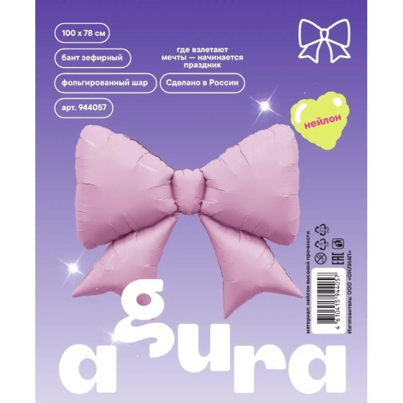 Шар (39''/99 см) Фигура, Бант, Зефирный, 1 шт. в уп., 944057