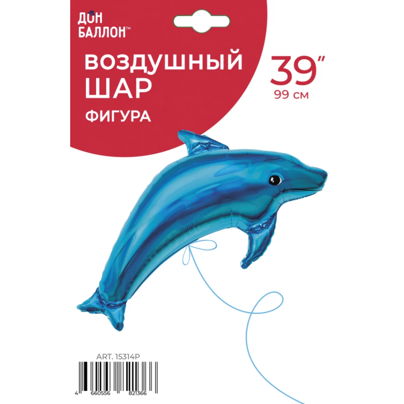 Шар (39''/99 см) Фигура, Дельфин, Голубой, 1 шт. в уп., 15314P