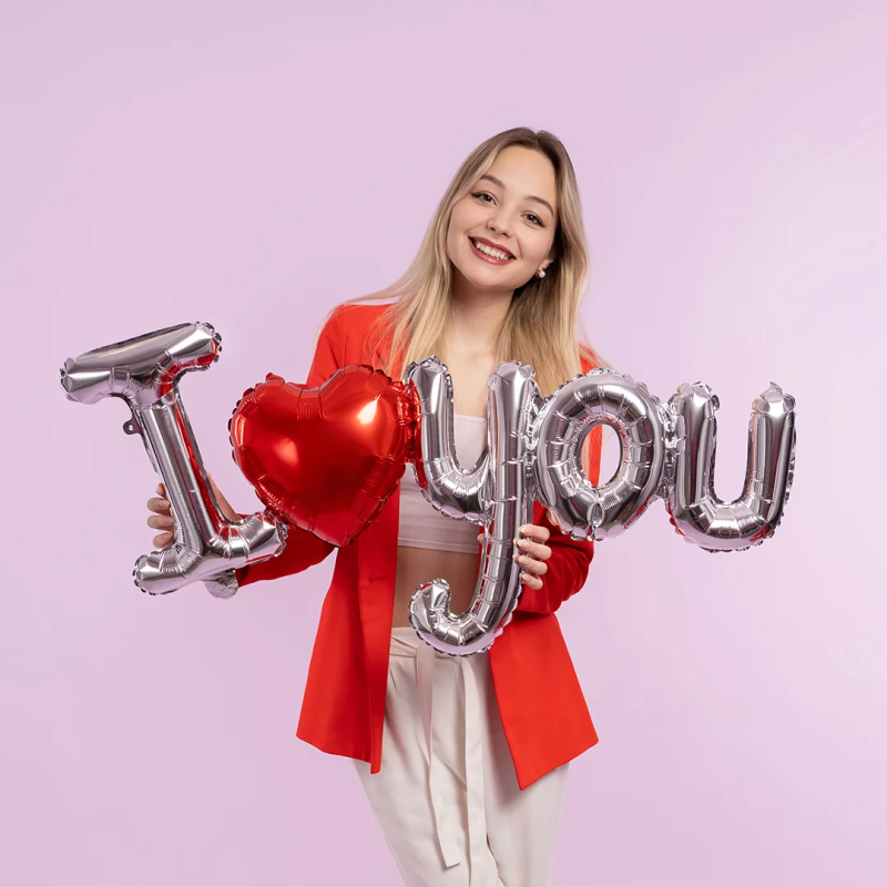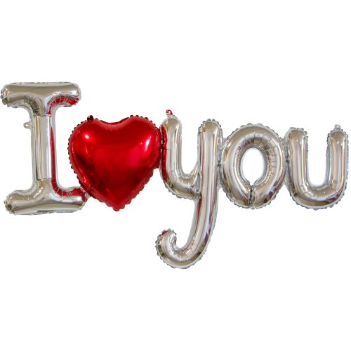 Шар (39''/99 см) Фигура, Надпись "I love you" с сердцем, Серебро, 1 шт., 17576