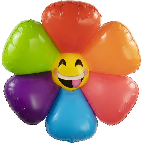 Шар (39''/99 см) Цветок, Ромашка Смайл, Радужный, 1 шт., 23473