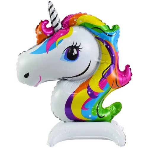 Шар 3D (18''/46 см) Фигура на подставке, Голова, Радужный Единорог, 1 шт. в уп., 23727P