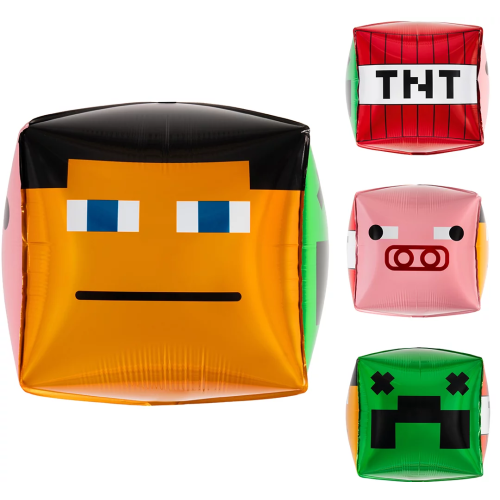 Шар 3D (22''/56 см) Куб, Пиксели, Герои, 1 шт. в уп., 26899P
