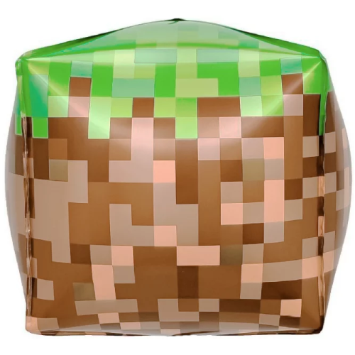 Шар 3D (22''/56 см) Куб, Пиксели, Зеленый/Коричневый, 1 шт. в уп., 26897P