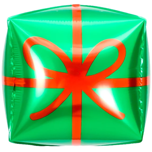 Шар 3D (22''/56 см) Куб, Подарок, Зеленый/Красный, 1 шт., 27049