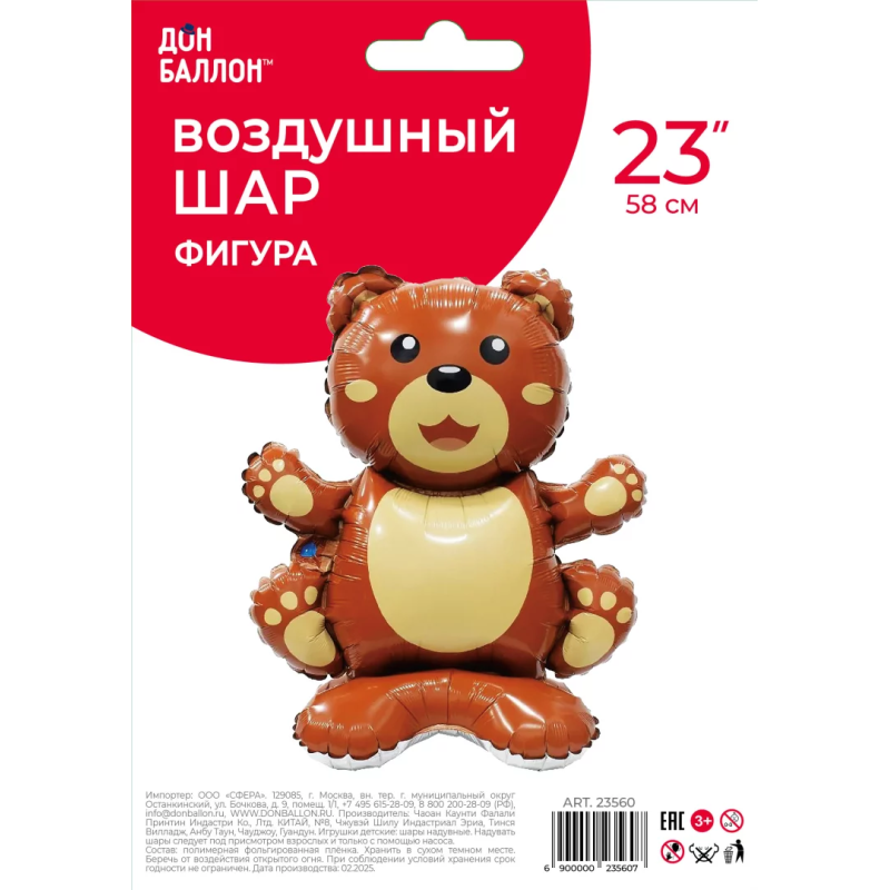 Шар 3D (23''/58 см) Фигура на подставке, Мишка, 1 шт. в уп., 23560