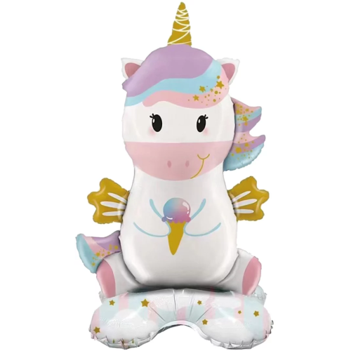 Шар 3D (23''/58 см) Фигура на подставке, Единорог с мороженым, 1 шт. в уп., 23833