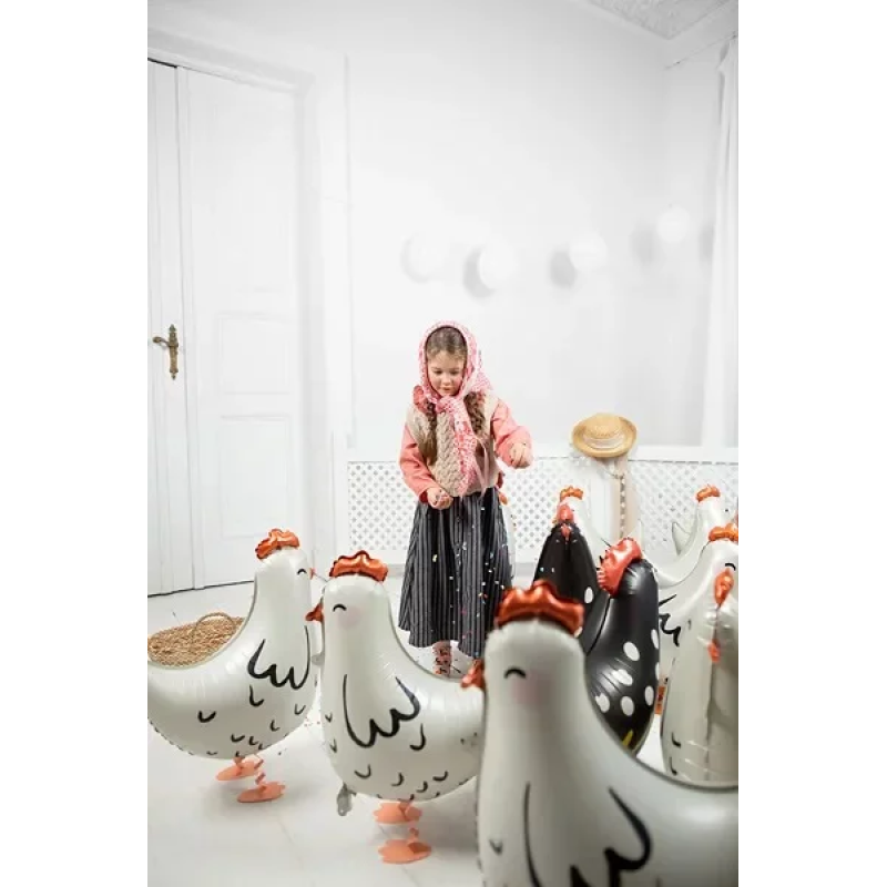 Шар 3D (23''/58 см) Ходячая Фигура, Курица, Черный, 1 шт., 24559