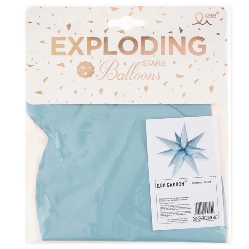 Шар 3D (26''/66 см) Звезда, Составная, Голубой, Сатин, 1 шт. в уп., 24824