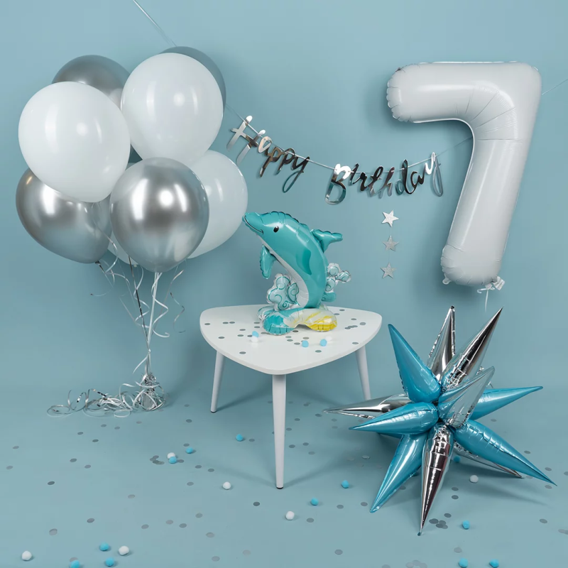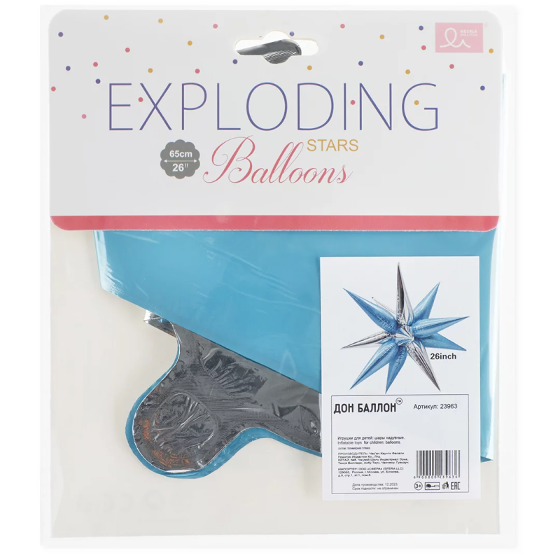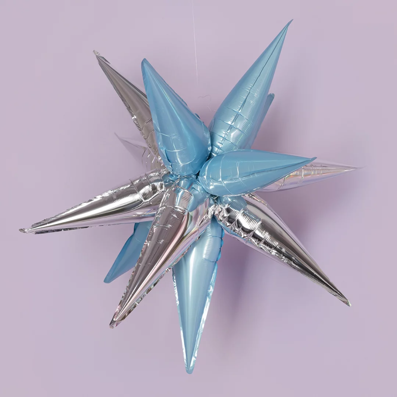 Шар 3D (26''/66 см) Звезда, Составная, Голубой/Серебро, 1 шт. в уп., 23963